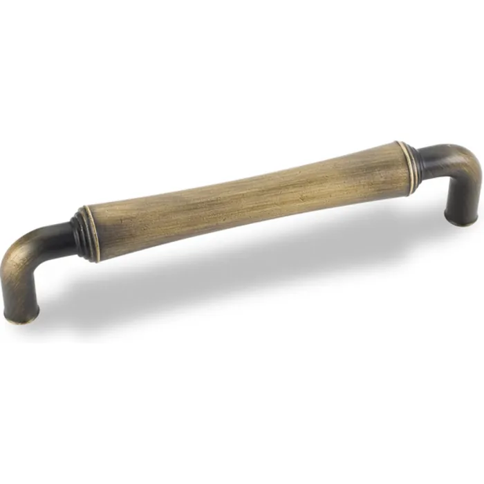 5-7/16" Overall Length Gavel Cabinet Pull. Holes are 128 mm center-to-center. Packaged with two 8-32 x 1" screws. Finish: Antique Brushed Satin Brass