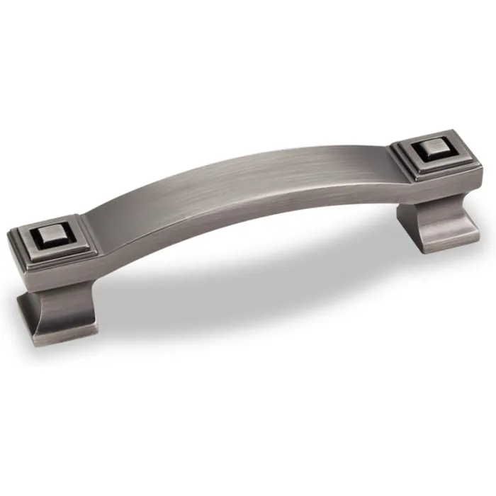 4-1/2" Overall Length Square Cabinet Pull. Holes are 96 mm center-to-center. Packaged with two 8-32 x 1" and two Break-away screws. Finish: Brushed Pewter