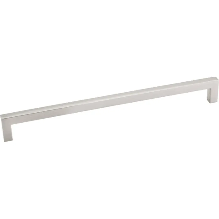 233mm Overall Length Square Cabinet Bar Pull. Holes are 224 mm center-to-center. Packaged with two 8-32 x 1" and two Break-away screws. Finish: Satin Nickel