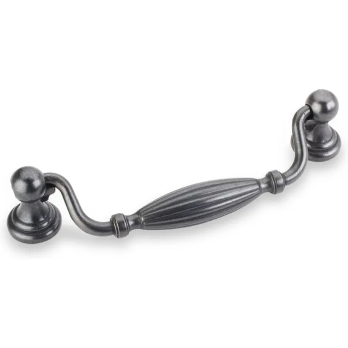 5-15/16" Overall Length Glenmore Cabinet Pull with two Backplates. Holes are 128 mm center-to-center. Packaged with two 8-32 x 1" screws. Finish: Gun Metal