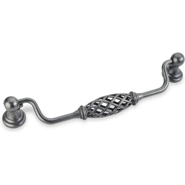 7-3/16" Overall Length Birdcage Cabinet Pull with backplates. Holes are 160 mm center-to-center. Packaged with two 8-32 x 1" screws. Finish: Gun Metal