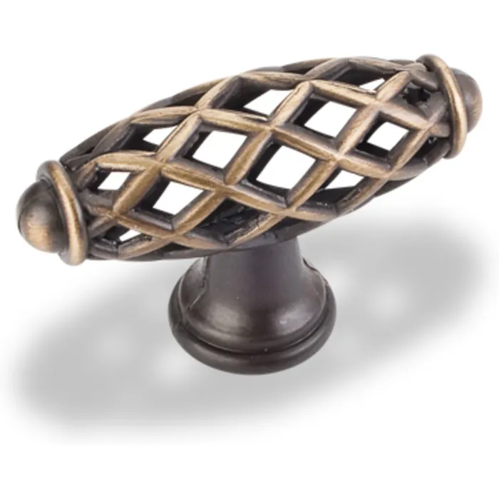 2-5/16" Overall Length Bird Cage Cabinet Knob. Packaged with one 8-32 x 1" screw. Finish: Antique Brushed Satin Brass