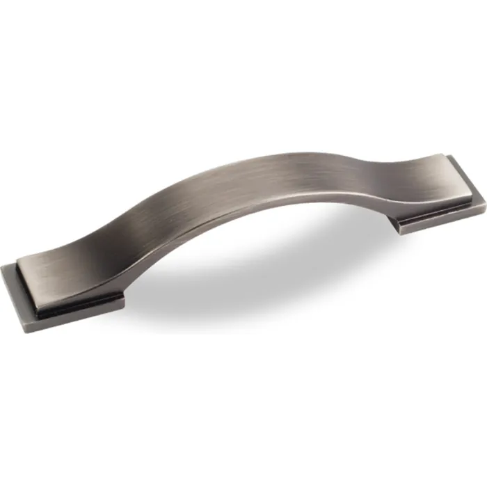 5-9/16" Overall Length Strap Cabinet Pull. Holes are 96 mm Center-to-Center. Packaged with two 8-32 x 1" and two Break-away screws. Finish: Brushed Pewter