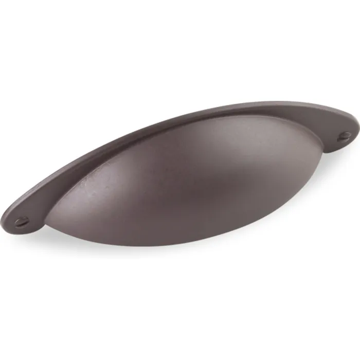 4-15/16" Overall Length Shaker Cabinet Cup Pull. Holes are 3" center-to-center. Packaged with two 8-32 x 1" and two Break-away screws. Finish: Dark Bronze