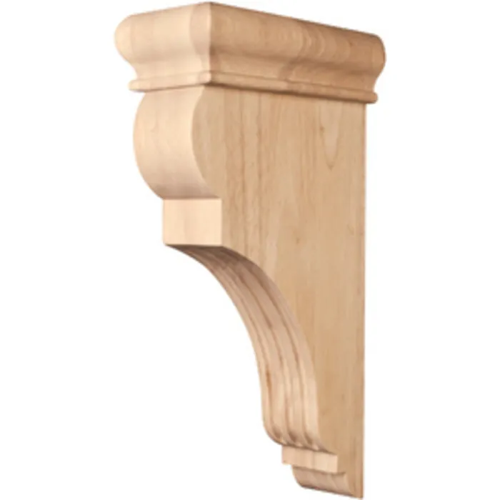 Traditional Fluted Wood Bar Bracket Corbel. 3" x 6-1/2" x 12".Species: White Birch