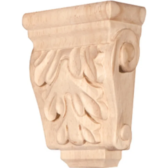 Mini Wood Corbel with Acanthus Detail. 3" x 1-3/4" x 4-1/4". Species: Rubberwood