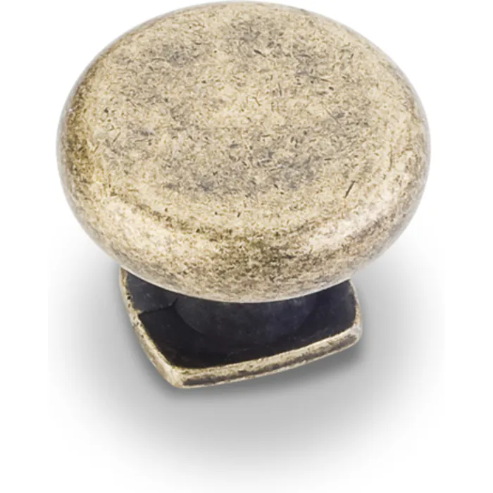 1-3/8" Diameter Forged Look Flat Bottom Cabinet Knob. Packaged with one 8-32 x 1" and 1-3/4" Break-away screw. Finish: Distressed Antique Brass