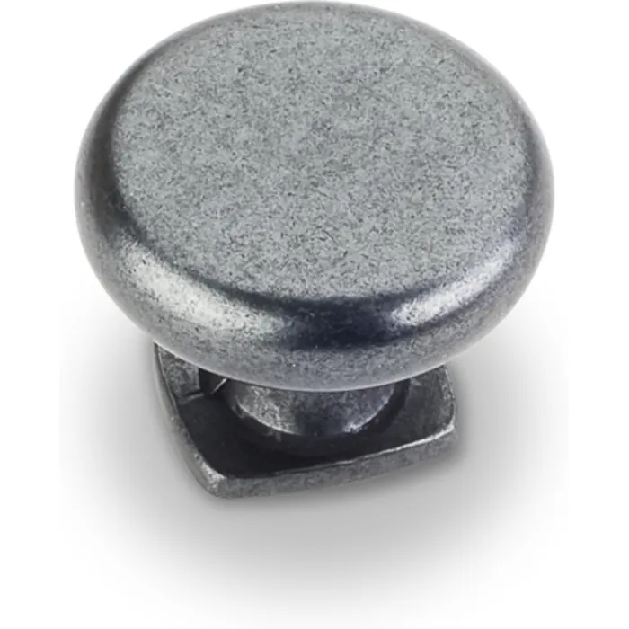 1-3/8" Diameter Forged Look Flat Bottom Cabinet Knob. Packaged with one 8-32 x 1" and 1-3/4" Break-away screw. Finish: Gun Metal