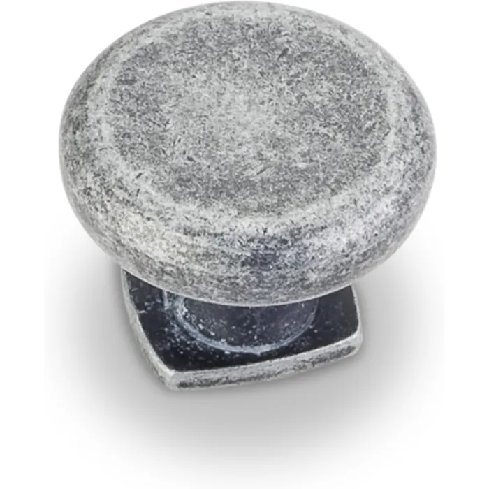 1-3/8" Diameter Forged Look Flat Bottom Cabinet Knob. Packaged with one 8-32 x 1" and 1-3/4" Break-away screw. Finish: Distressed Antique Silver