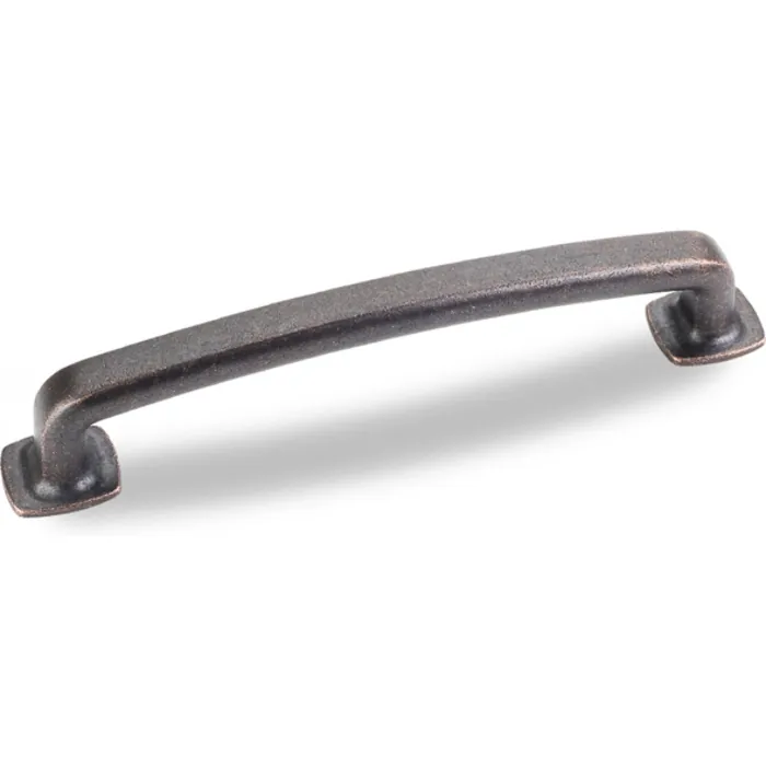 5-7/8" Overall Length Forged Look Flat Bottom Pull 128 mm center-to-center. Packaged with two 8-32 x 1" and two Break-away screws. Finish: Distressed Oil Rubbed Bronze