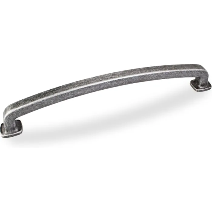 13-1/4" Overall Length Forged Look Flat Bottom Appliance Pull. Holes are 12" center-to-center. Packaged with two 8-32 x 1" and two Break-away screws. Finish: Distressed Antique Silver