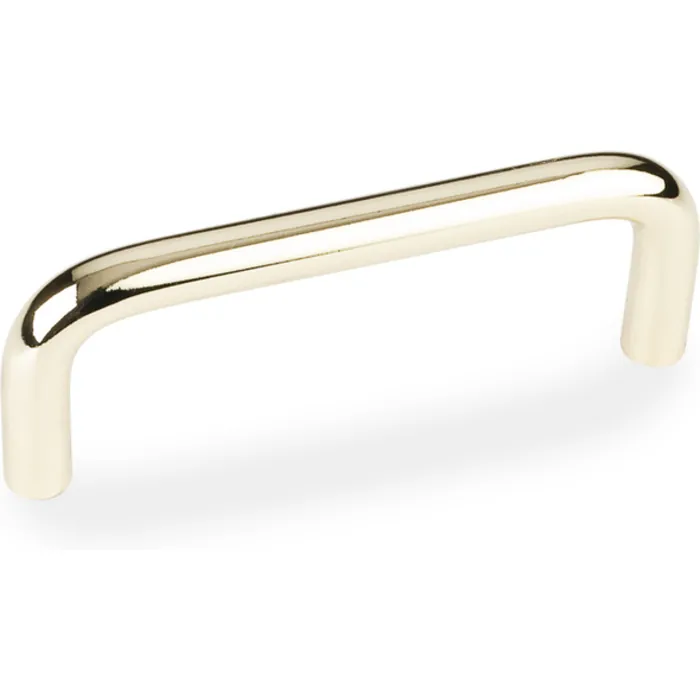 3-3/8" Overall Length Steel Wire Cabinet Pull. Holes are 3" center-to-center. Packaged with two 8-32 x 1" and two Break-away screws. Finish: Polished Brass