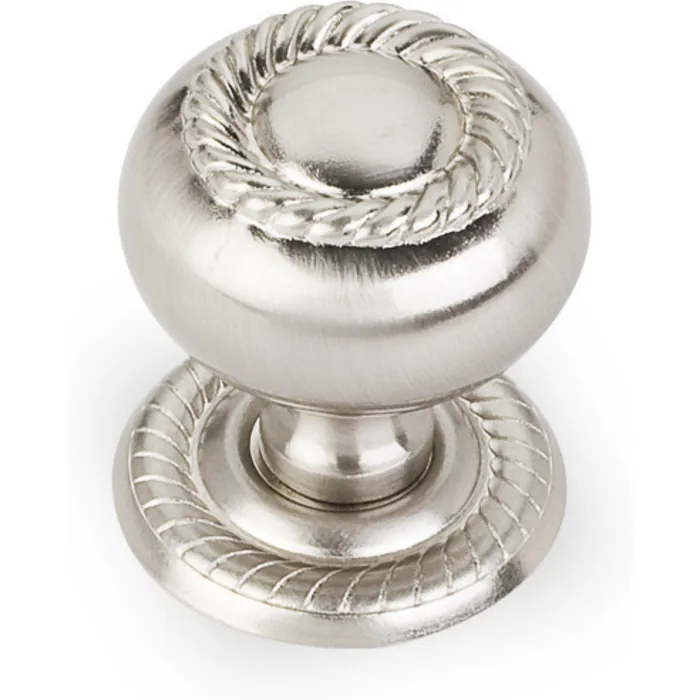 1-1/4" Diameter Hollow Steel Rope Knob with Backplate. Packaged with one 8-32 x 1" and 1-3/4" Break-away screw. Finish: Satin Nickel