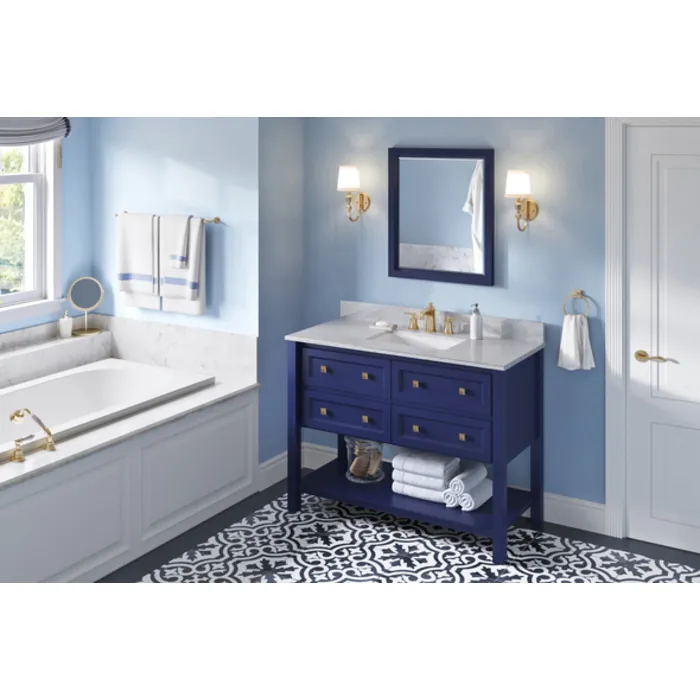 - Vanity Kit: 48" Hale Blue Adler Vanity (VN2ADL-48-BL-NT), 49" White Carrara Marble top (TOPR49WC), 1 rectangle bowl (VN2-RECT-19)