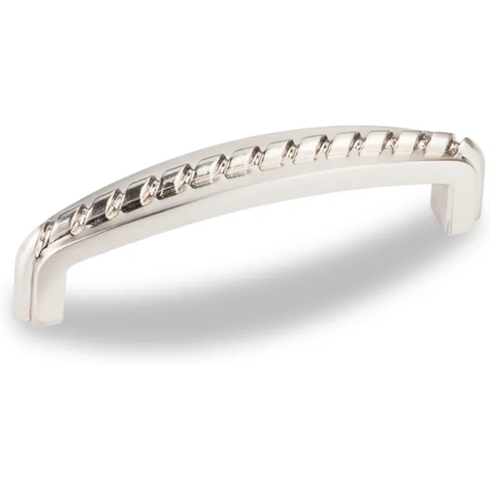 3-3/8" Overall Length Cabinet Pull with Rope Detail. Holes are 3" center-to-center. Packaged with two 8-32 x 1" and two Break-away screws. Finish: Satin Nickel