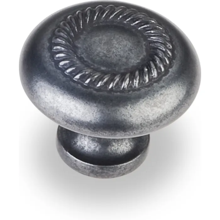 1-1/4" Diameter Cabinet Knob with Rope Detail. Packaged with one 8-32 x 1" and 1-3/4" Break-away screw. Finish: Gun Metal
