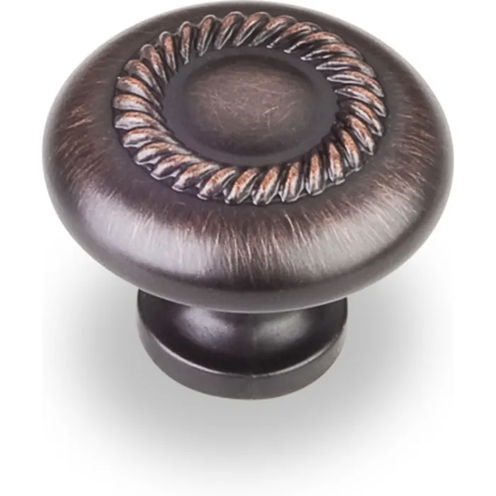 1-1/4" Diameter Cabinet Knob with Rope Detail. Packaged with one 8-32 x 1" and 1-3/4" Break-away screw. Finish: Brushed Oil Rubbed Bronze