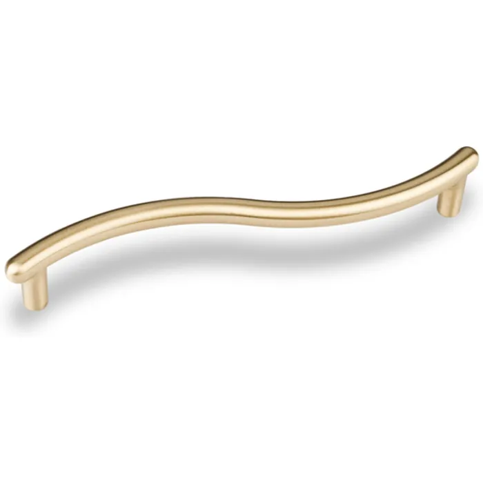 5-3/4" Overall Length Curved Pull. Holes are 128 mm center-to-center. Packaged with two 8-32 x 1" screws. Finish: Brushed Brass