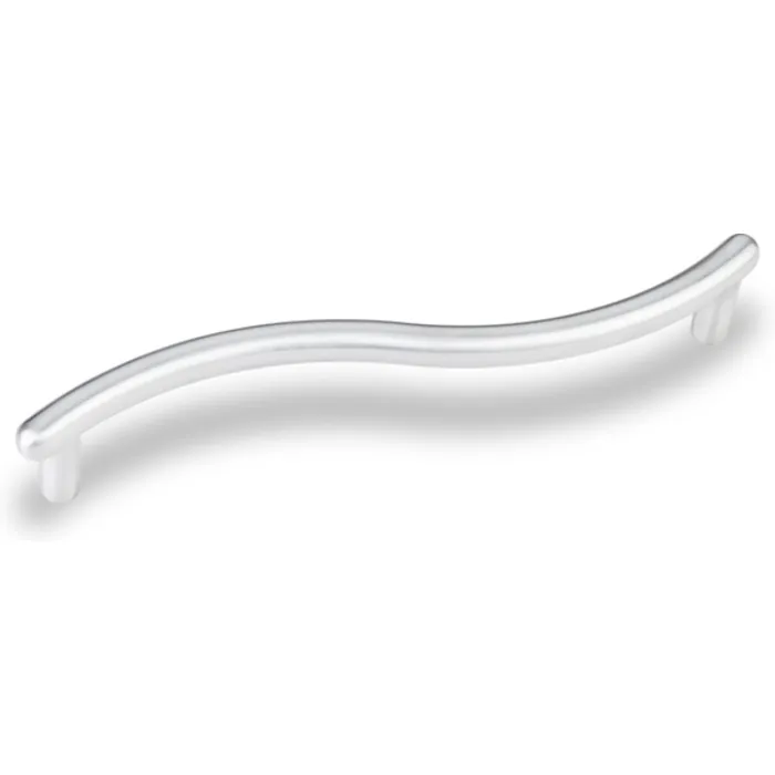 5-3/4" Overall Length Curved Pull. Holes are 128 mm center-to-center. Packaged with two 8-32 x 1" and two Break-away screws. Finish: Brushed Chrome