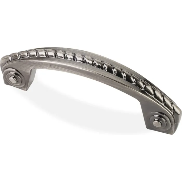3-3/4" Overall Length Rope Detail Cabinet Pull. Holes are 3" center-to-center. Packaged with two 8-32 x 1" and two Break-away screws. Finish: Brushed Black Nickel