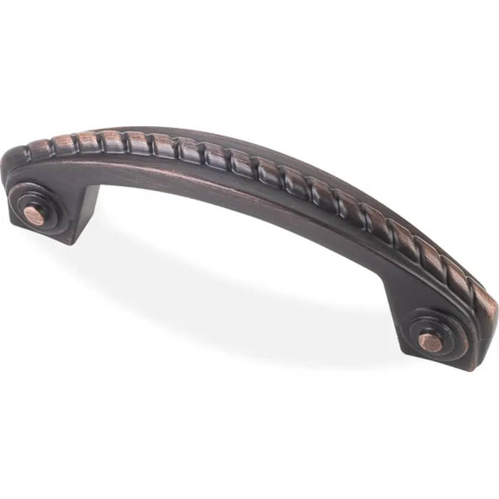 3-3/4" Overall Length Rope Detail Cabinet Pull. Holes are 3" center-to-center. Packaged with two 8-32 x 1" and two Break-away screws. Finish: Brushed Oil Rubbed Bronze