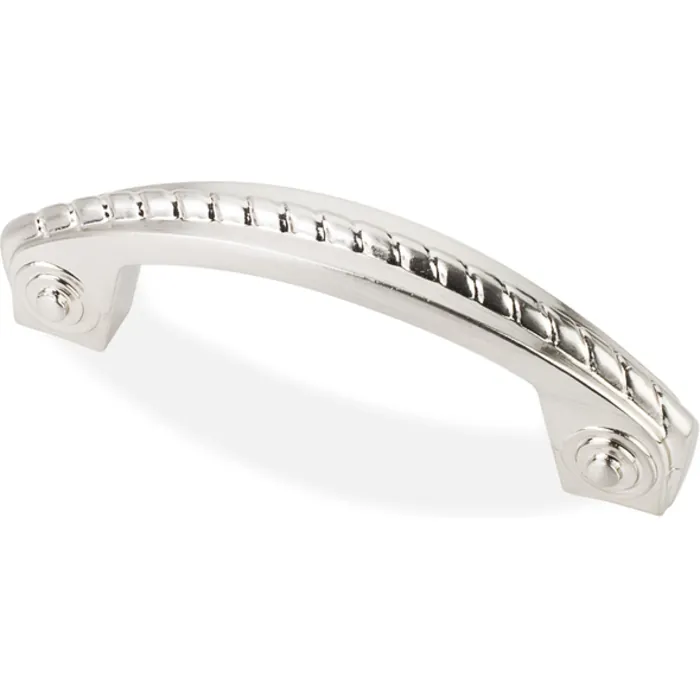 3-3/4" Overall Length Rope Detail Cabinet Pull. Holes are 3" center-to-center. Packaged with two 8-32 x 1" and two Break-away screws. Finish: Satin Nickel