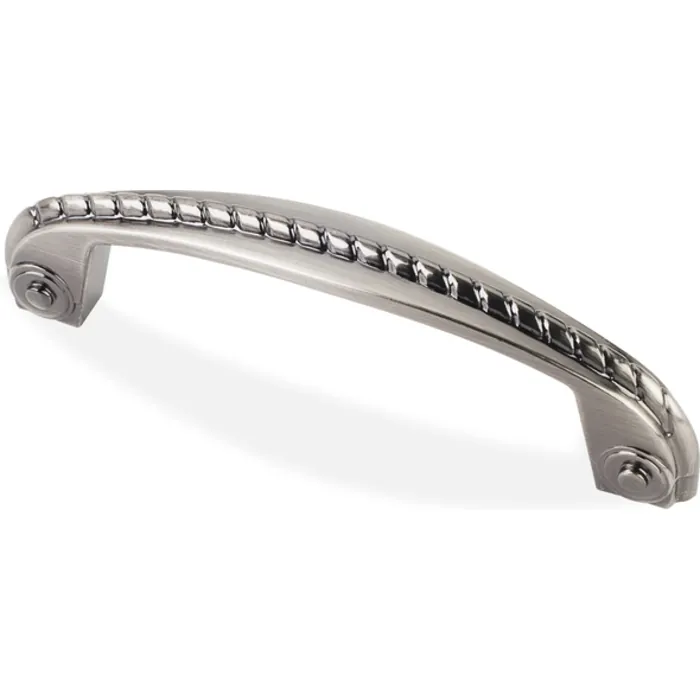 4-1/2" Overall Length Rope Detail Cabinet Pull. Holes are 96 mm center-to-center. Packaged with two 8-32 x 1" and two Break-away screws. Finish: Brushed Black Nickel