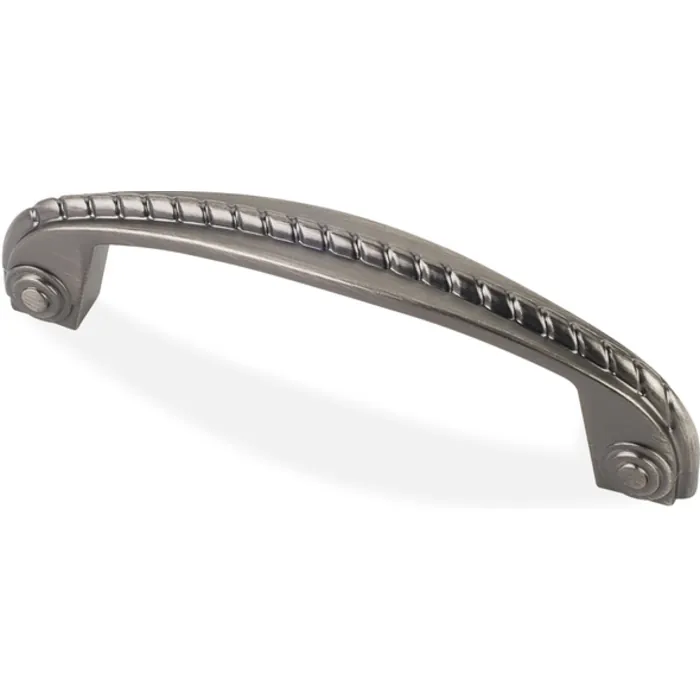 4-1/2" Overall Length Rope Detail Cabinet Pull. Holes are 96 mm center-to-center. Packaged with two 8-32 x 1" and two Break-away screws. Finish: Brushed Pewter