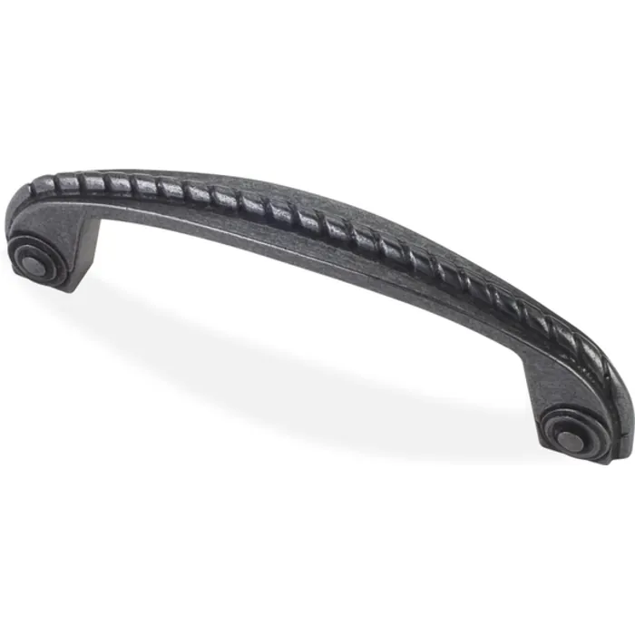 4-1/2" Overall Length Rope Detail Cabinet Pull. Holes are 96 mm center-to-center. Packaged with two 8-32 x 1" and two Break-away screws. Finish: Gun Metal