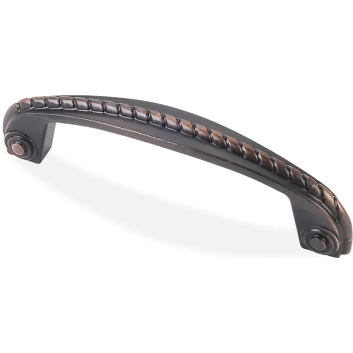 4-1/2" Overall Length Rope Detail Cabinet Pull. Holes are 96 mm center-to-center. Packaged with two 8-32 x 1" and two Break-away screws. Finish: Brushed Oil Rubbed Bronze