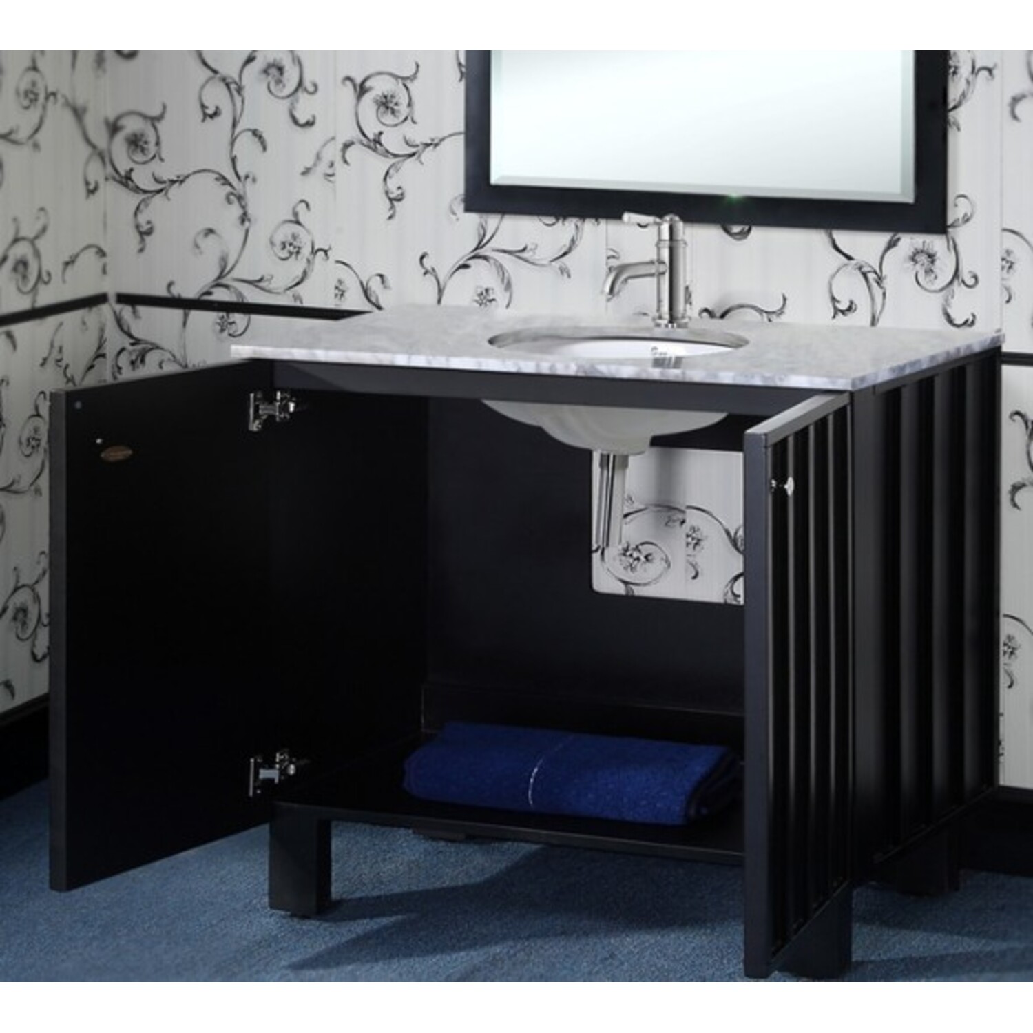 This Country Style Vanity will bring a sense of warmth to any bathroom. It features a Carrara white marble top with an under mounted sink. It's soft-closing double-door has plenty of room for storage. A matching framed beveled edge wall mirror is included to complete the look.