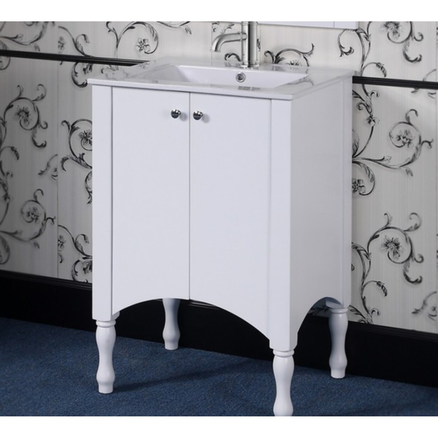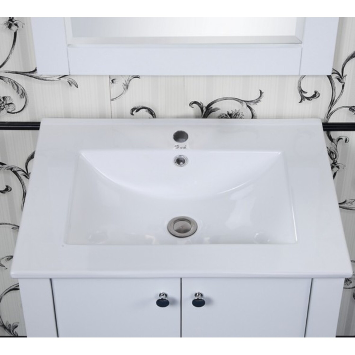 This Contemporary Style Vanity will bring a sense of elegance in any small bathroom. It features a ceramic Sink-top with double-door design. A Matching Framed Arched Top Wall Mirror is included to complete the look.