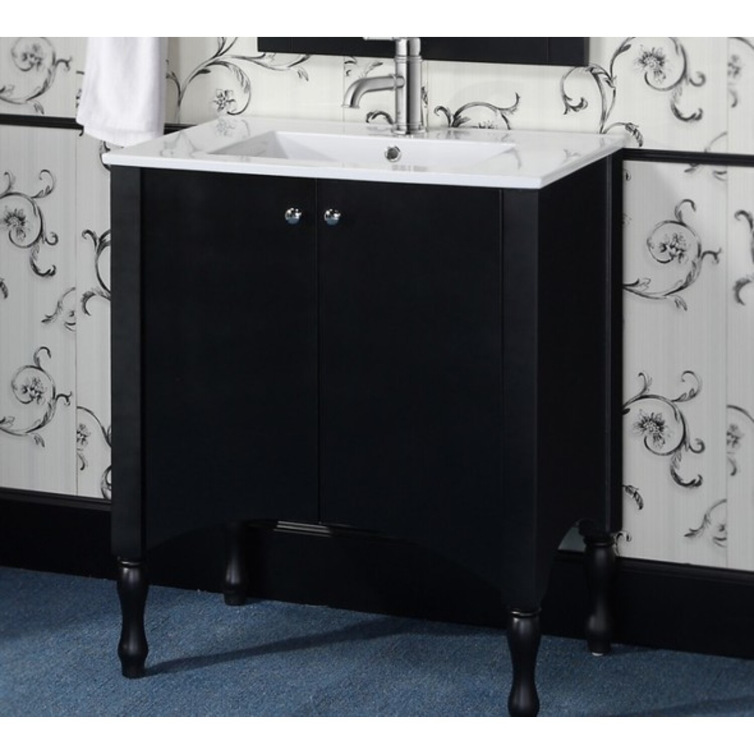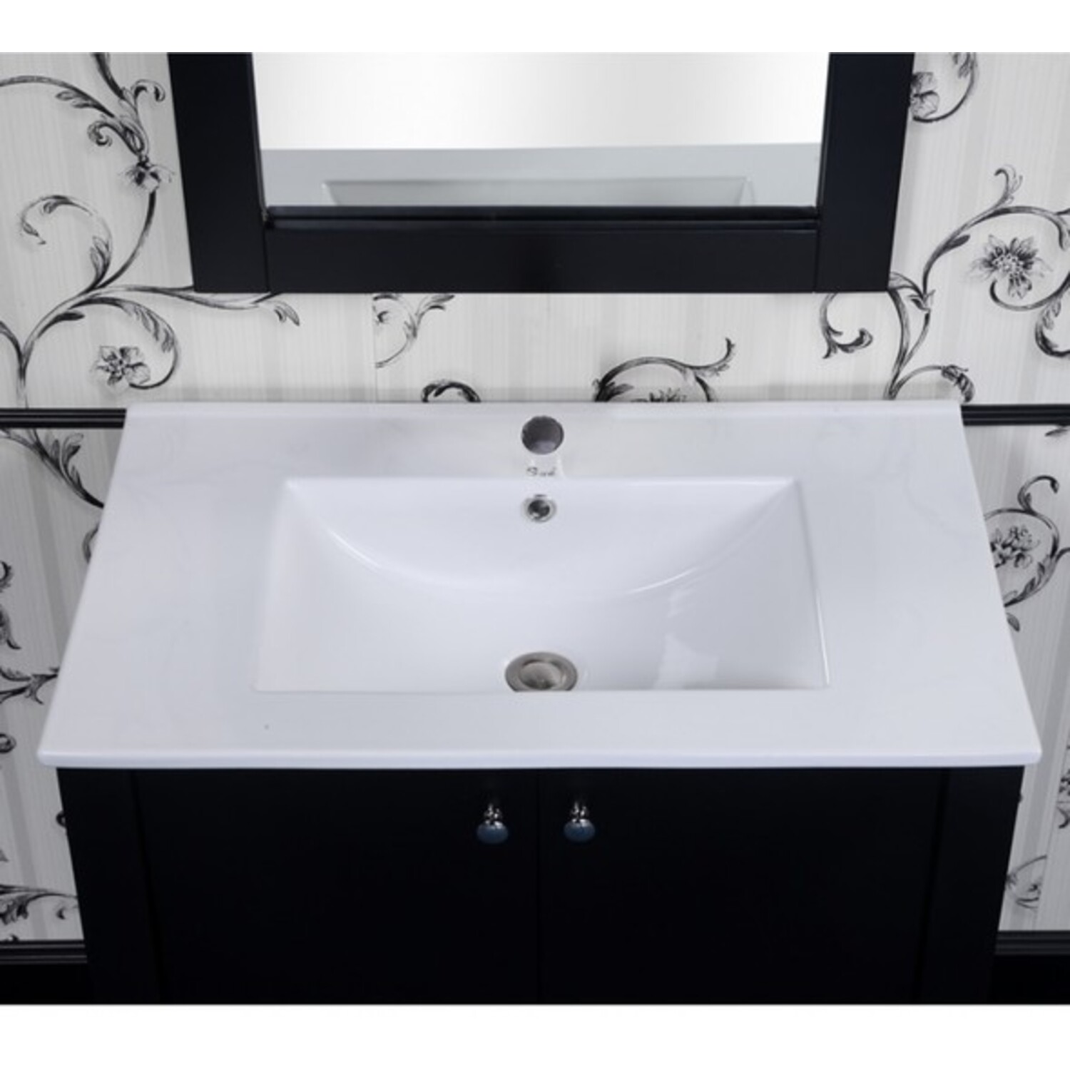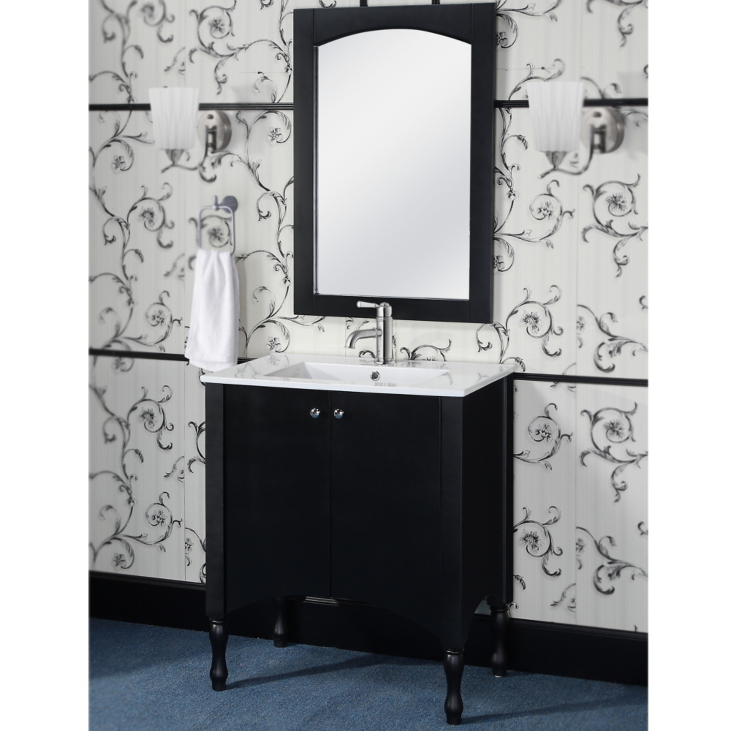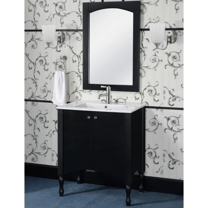 This Contemporary Style Vanity will bring a sense of elegance in any small bathroom. It features a ceramic Sink-top with double-door design. A Matching Framed Arched Top Wall Mirror is included to complete the look.