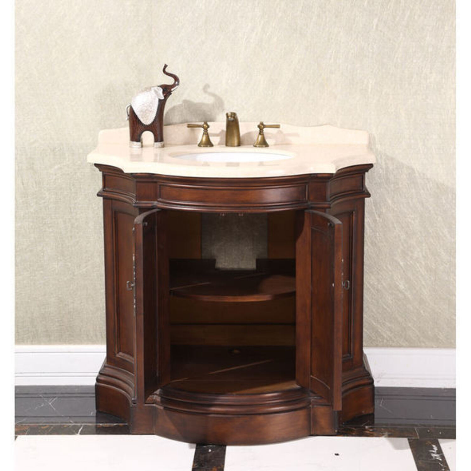Infurniture WB-1838L 38 inch Bathroom Vanity With A Marble Countertop And A Sink -thailand Oak Soild Wood With Leather Varving For The Doors