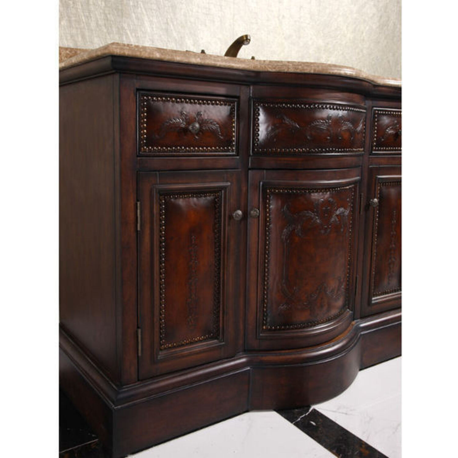 - Thailand Oak Soild Wood with Leather Varving for the doors and drawers