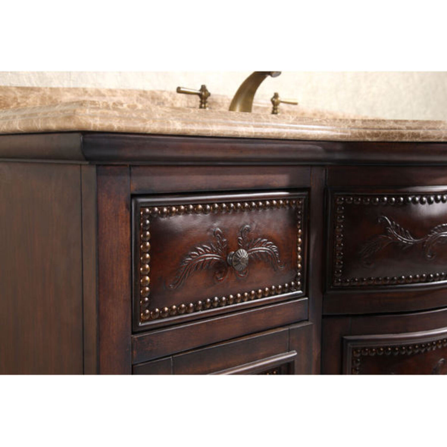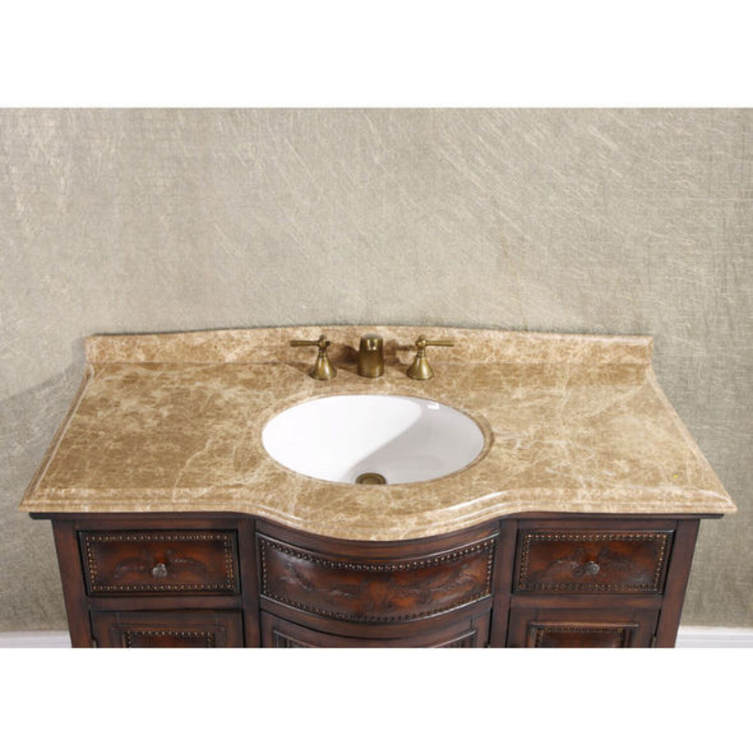 Infurniture WB-2848L 48 inch Bathroom Vanity With A Marble Countertop And A Sink -thailand Oak Soild Wood With Leather Varving For The Doors And Drawers