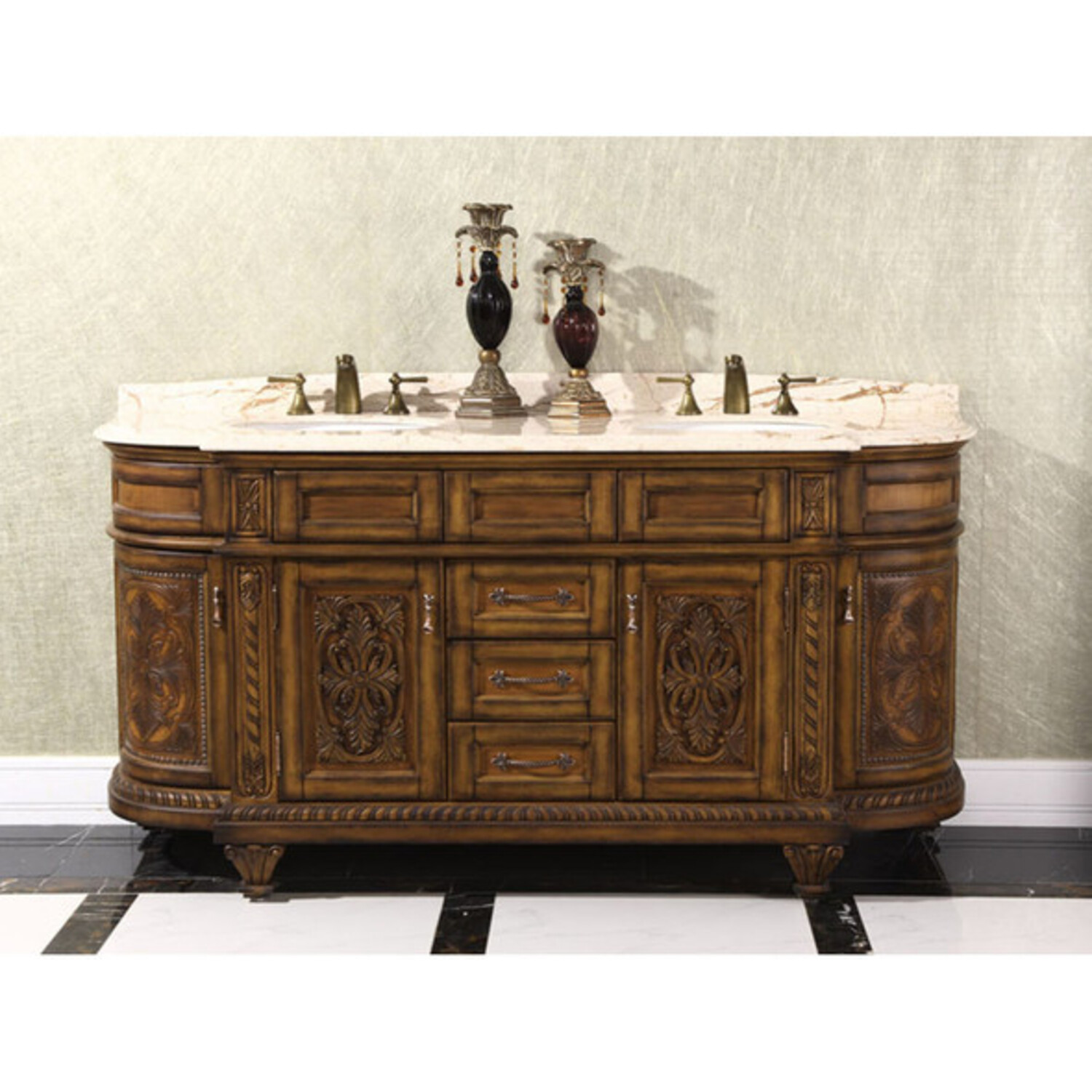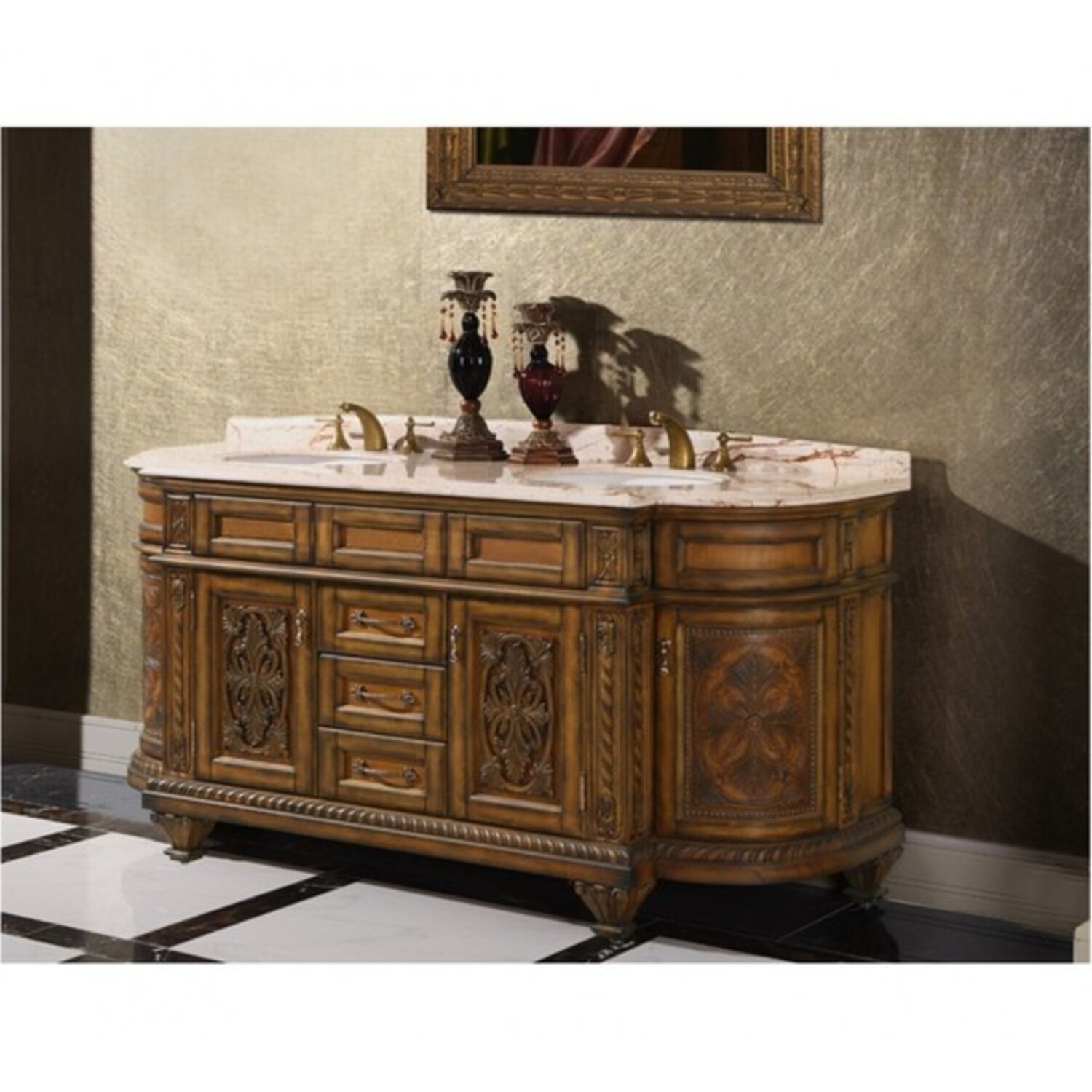 Infurniture WB-2871L 71 inch Double Bathroom Vanity - Thailand Oak Soild Wood With Leather Varving For The Doors