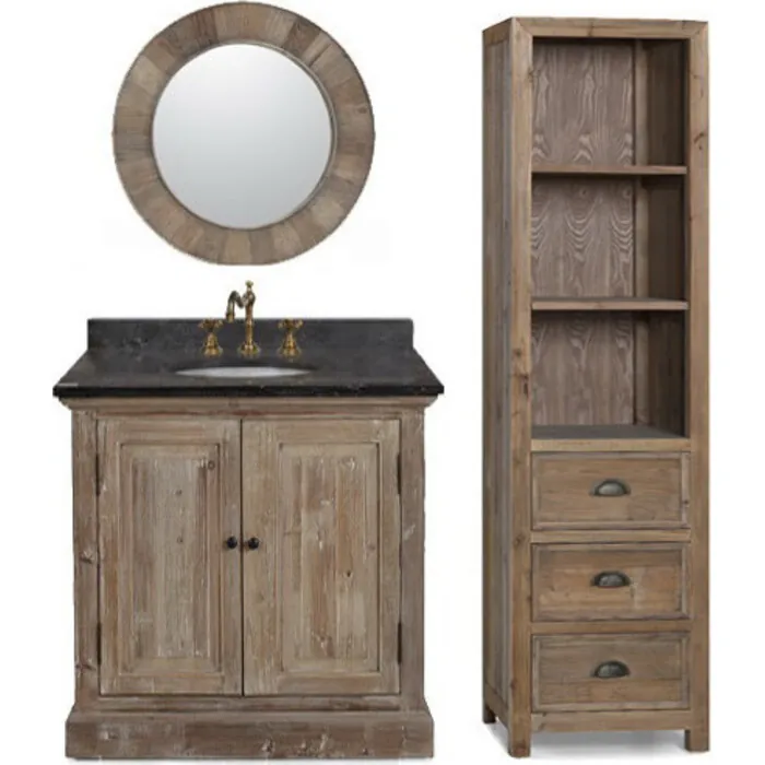 Infurniture WK1836 Recycled Fir 36 inch Bathroom Vanity Cabinet. Optional Black Marble Countertop And Sink