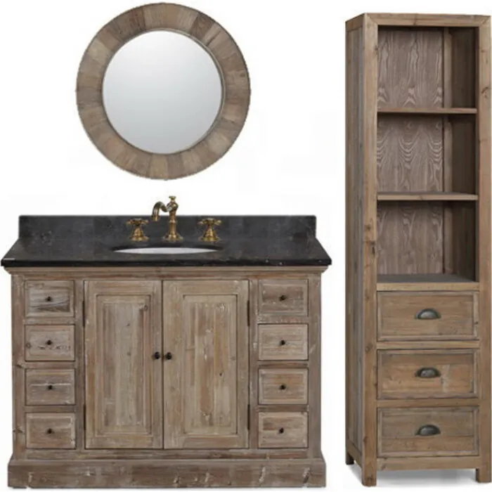 Infurniture WK1848 Recycled Fir 48 inch Bathroom Vanity Cabinet. Optional Black Marble Countertop And Sink