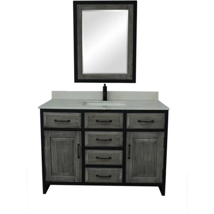 Infurniture 48" Rustic solid fir single sink iron frame vanity in grey with arctic pearl quartz top-no faucet WK8848-G-AP