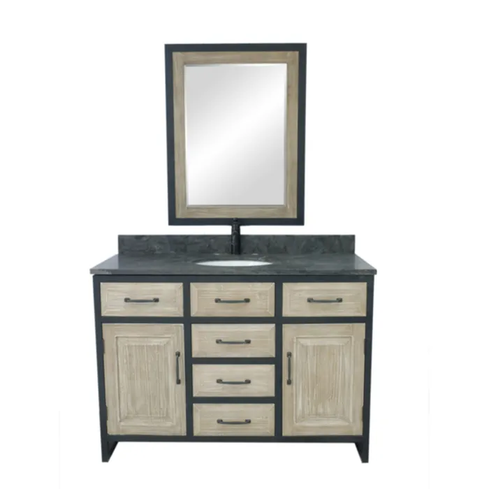 Infurniture 48" Rustic solid fir single sink iron frame vanity with limestone top-no faucet WK8848-WK