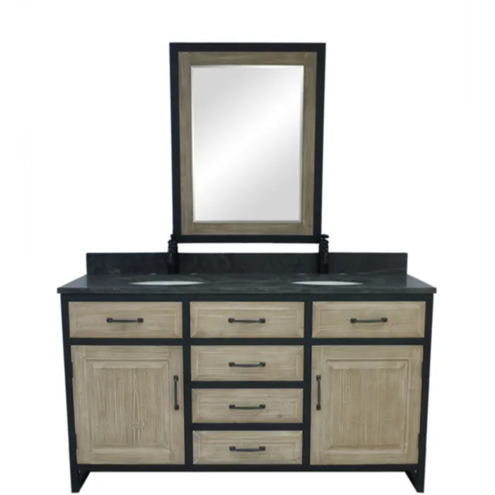 Infurniture 60" Rustic solid fir double sink iron frame vanity with limestone top-no faucet WK8860-WK