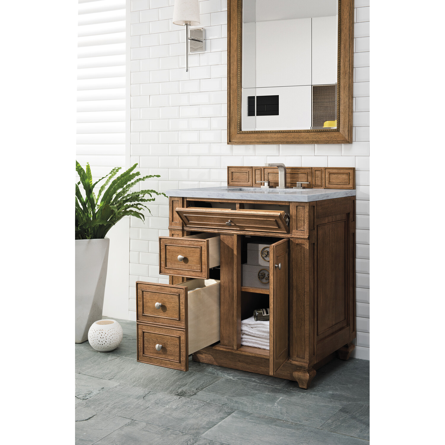 James Martin Bristol 30 inch Single Bathroom Vanity, Saddle Brown w/ 3 CM Carrara Marble Top 157-V30-SBR-3CAR