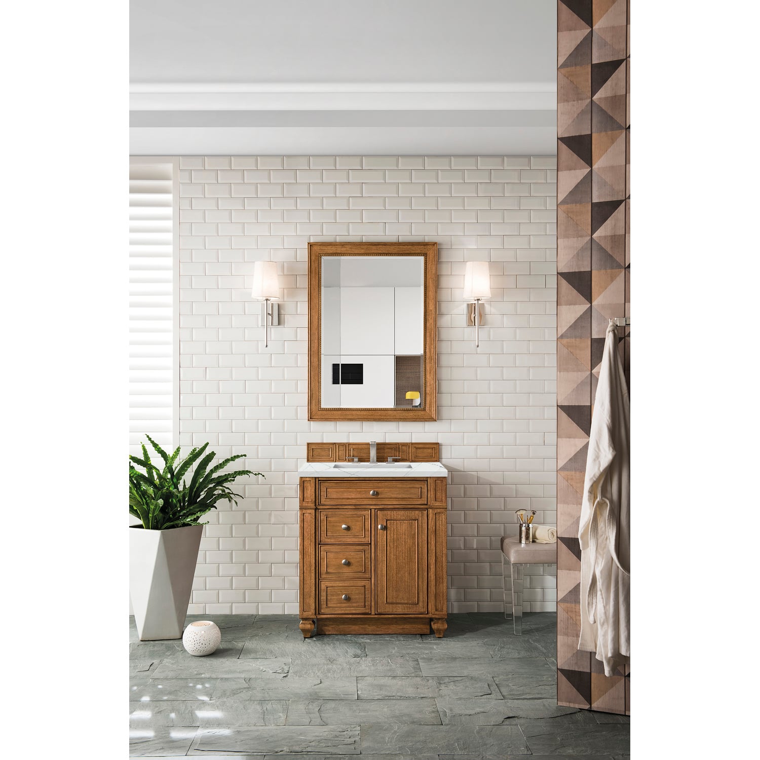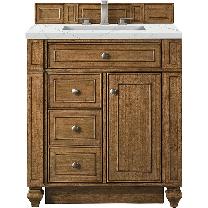 James Martin Bristol 30 inch Single Bathroom Vanity, Saddle Brown w/ 3 CM Ethereal Noctis Quartz Top 157-V30-SBR-3ENC