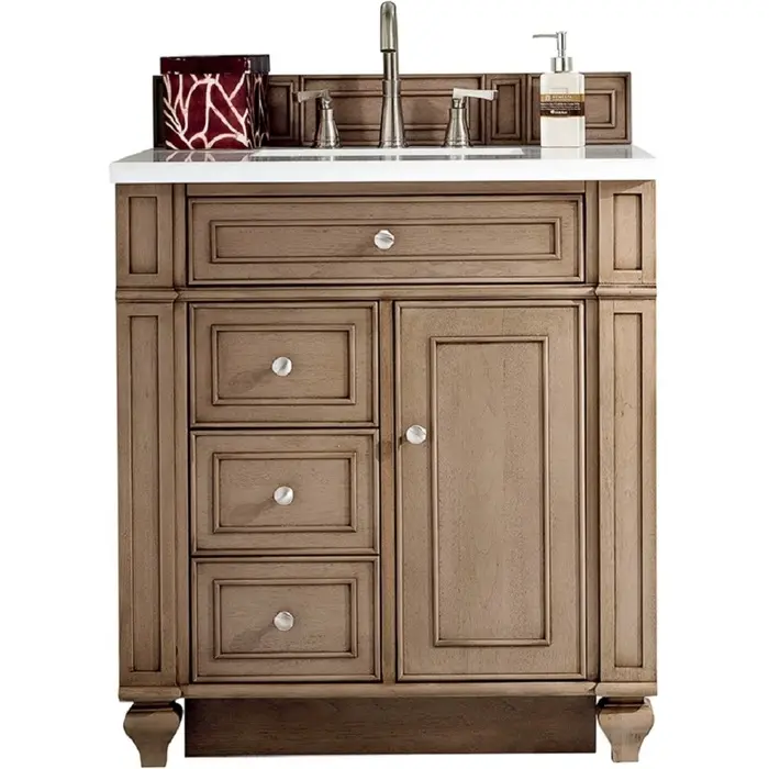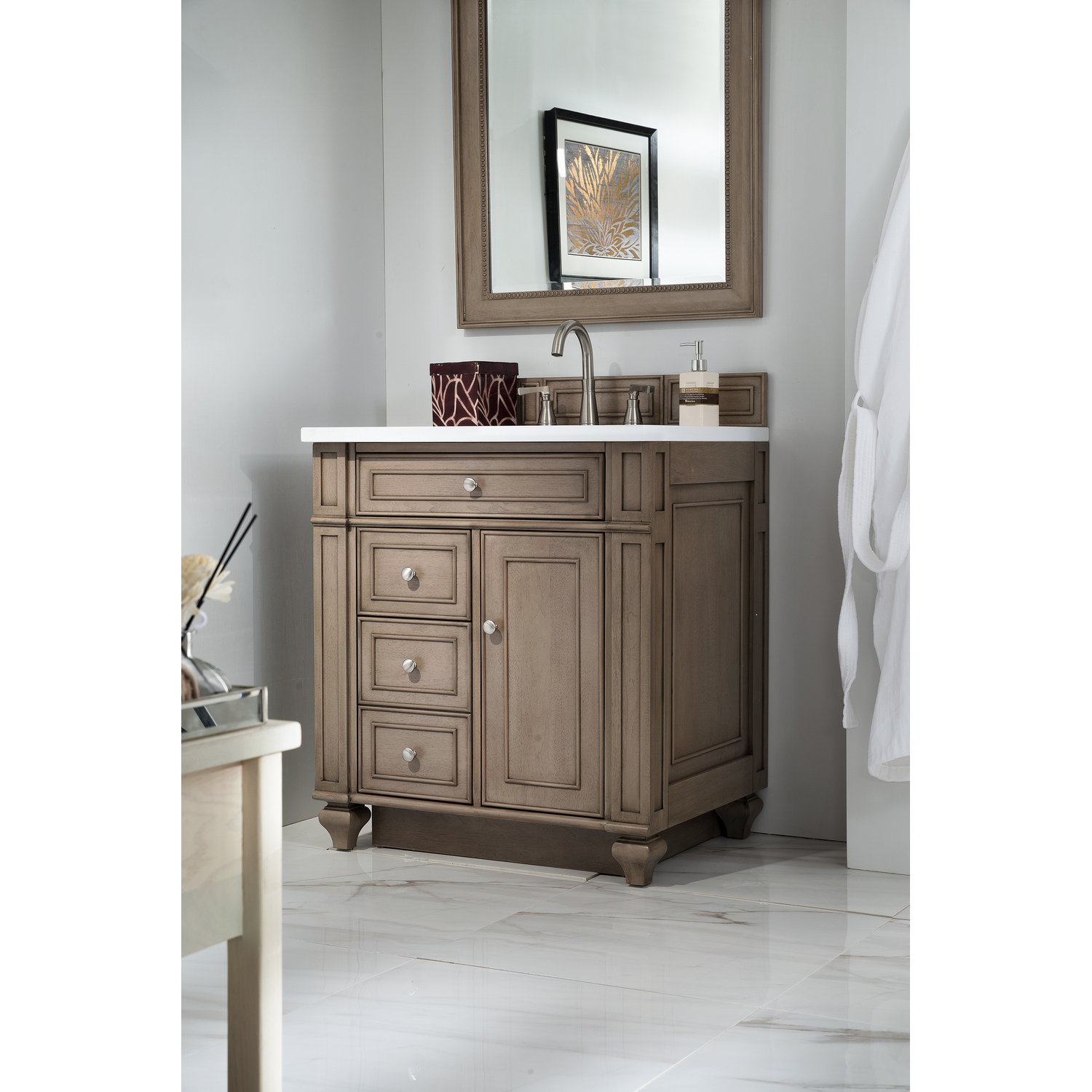 James Martin Bristol 30 inch Single Bathroom Vanity, Whitewashed Walnut w/ 3 CM White Zeus Quartz Top 157-V30-WW-3WZ