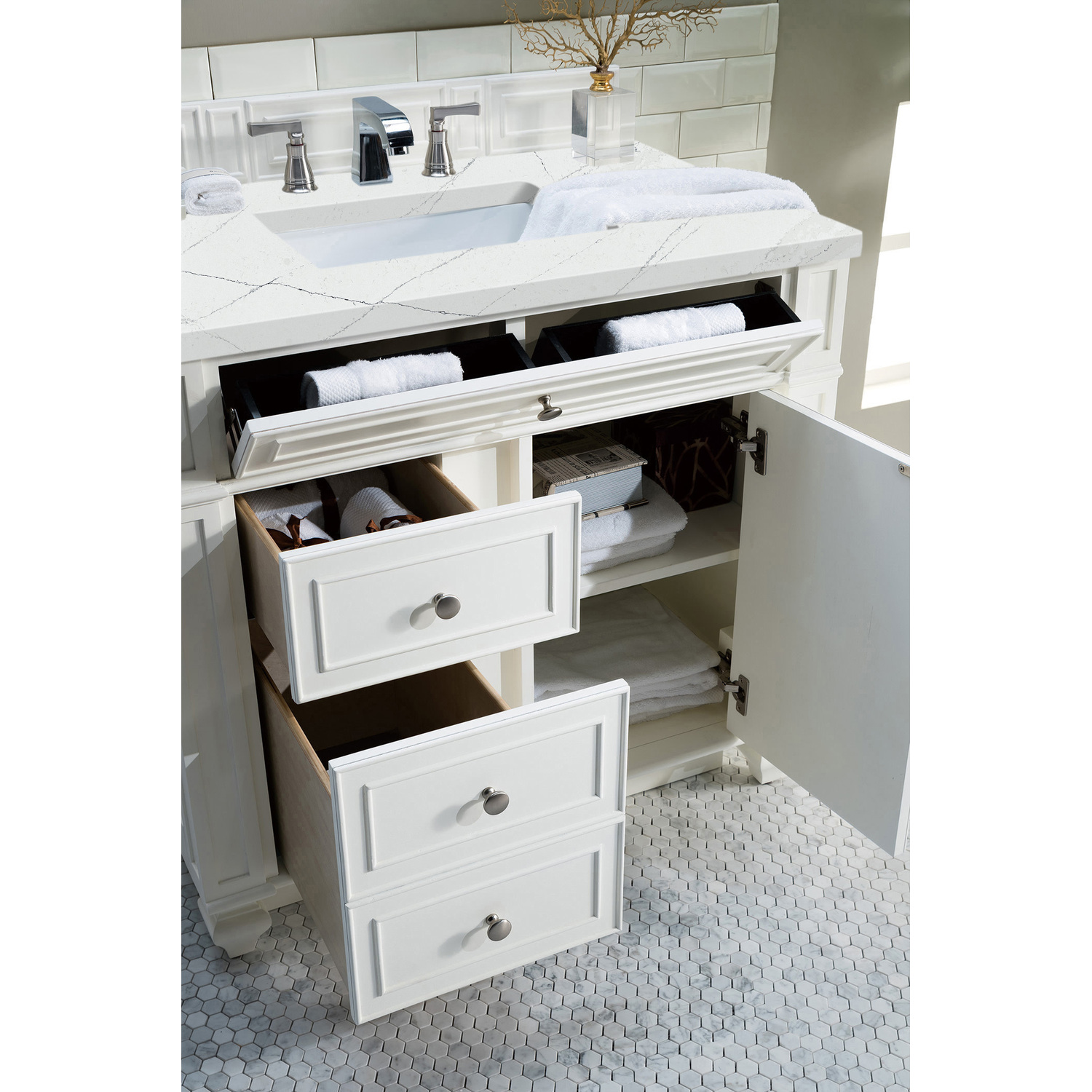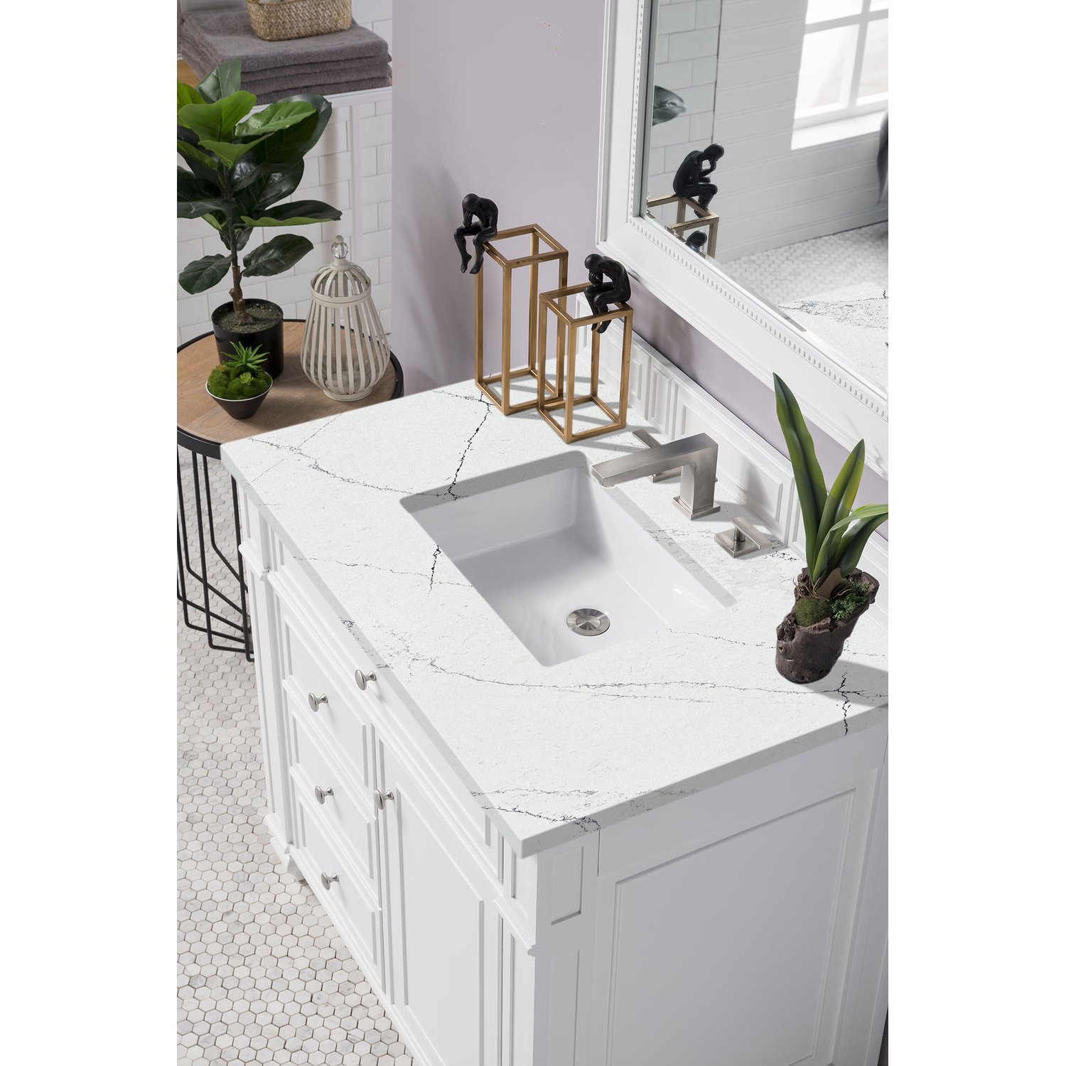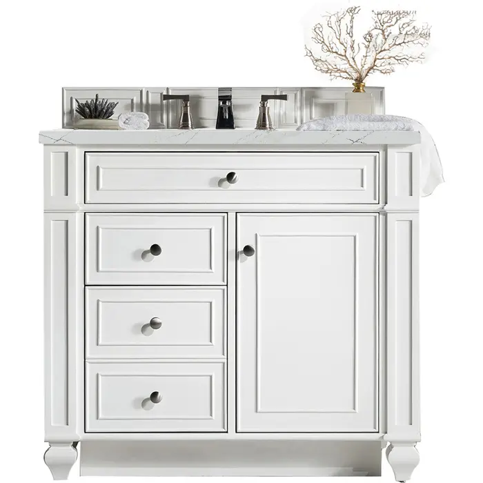 James Martin Bristol 36 inch Single Bathroom Vanity, Bright White w/ 3 CM Ethereal Noctis Quartz Top 157-V36-BW-3ENC