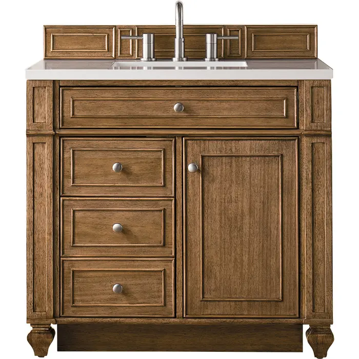 James Martin Bristol 36 inch Single Bathroom Vanity, Saddle Brown w/ 3 CM White Zeus Quartz Top 157-V36-SBR-3WZ