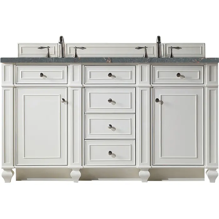James Martin Bristol 60 inch Double Vanity, Bright White w/ 3 CM Parisien Bleu Quartz Top, 840108967542, 157-V60D-BW-3PBL