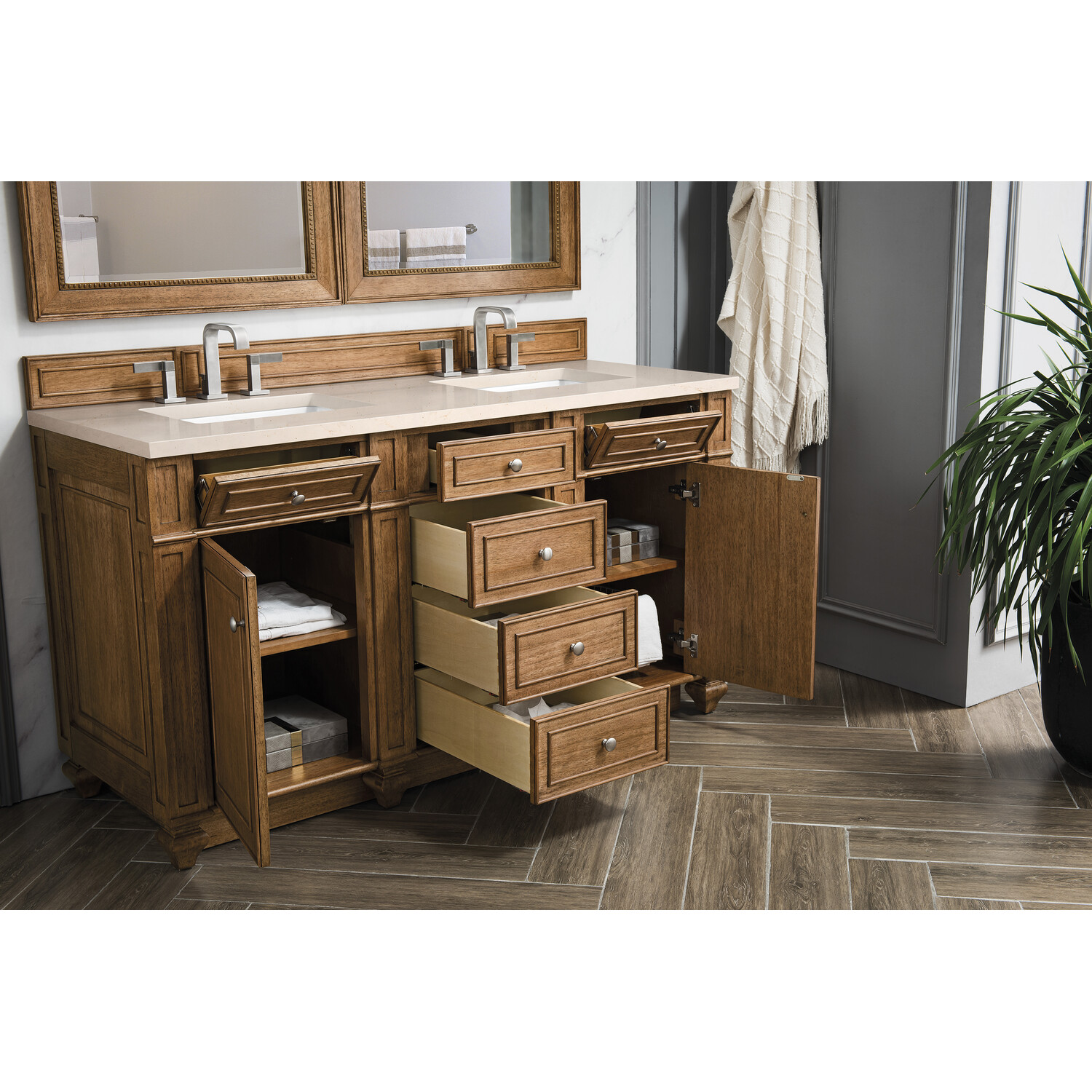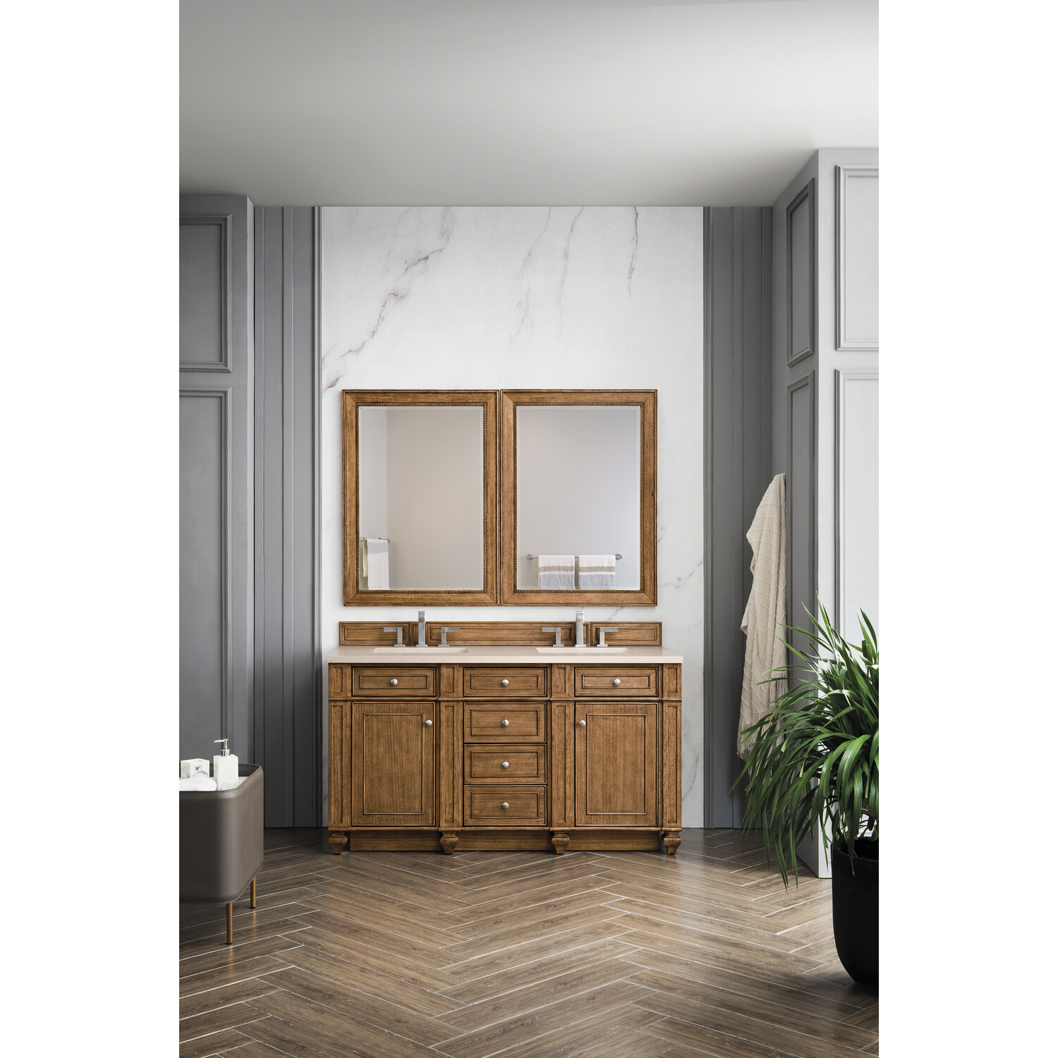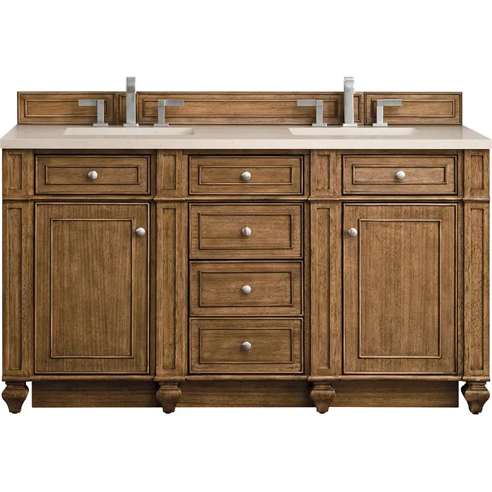 James Martin Bristol 60 inch Double Bathroom Vanity, Saddle Brown w/ 3 CM Eternal Marfil Quartz Top 157-V60D-SBR-3EMR