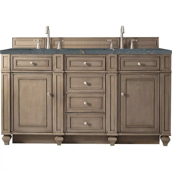 James Martin Bristol 60 inch Double Vanity, Whitewashed Walnut w/ 3 CM Parisien Bleu Quartz Top, 840108967566, 157-V60D-WW-3PBL